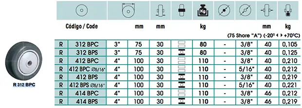 Rueda de Resina Termoplástica y Núcleo de Polipropileno.